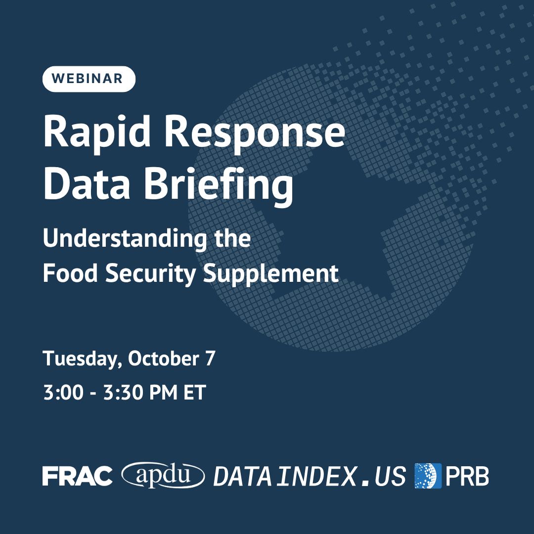 The Food Security Supplement (FSS) is a critical dataset. It provides the only nationally representative measure of household food insecurity, guiding policymakers, advocates, and researchers in shaping effective anti-hunger strategies. Yet, the future of this dataset is at risk. Decisions made in the coming months could determine whether this vital tool remains available to track food security and inform solutions. The data are collected through a supplement to the Current Population Survey, which is conducted by the U.S. Census Bureau and sponsored by USDA's Economic Research Service (ERS). On September 20, 2025, USDA announced the termination of this critical resource.